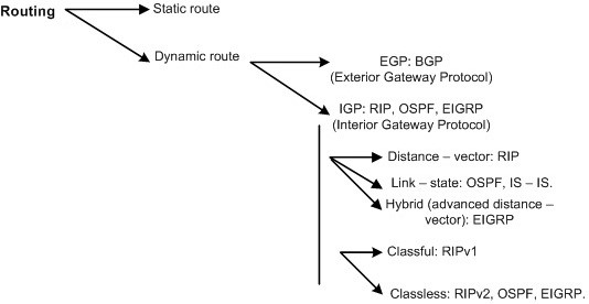 Có nhiều tiêu chí để phân loại các giao thức định tuyến khác nhau. Định tuyến được phân chia thành 2 loại cơ bản: