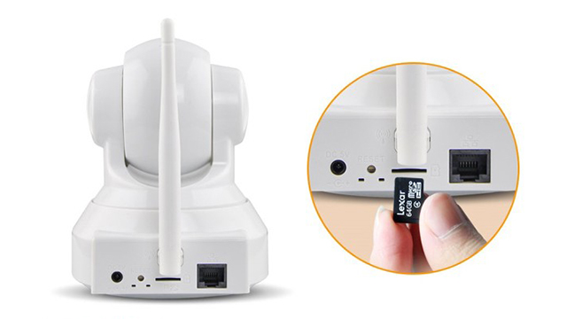 - Camera ip wifi có khe cắm thẻ nhớ giúp ghi, lưu trữ và xem lại truờng hợp bạn vắng nhà.